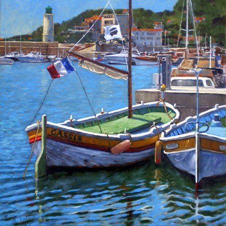 The composition I chose was influenced by the interesting pattern of horizontal, vertical and diagonal elements created by the harbour, boats and masts - the two flags gave a sense of movement and colour.